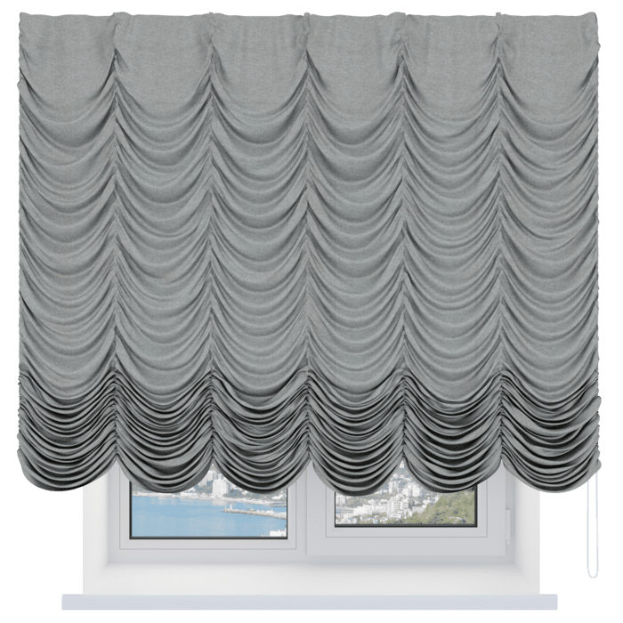 Французская штора лён кашемир серый, карниз верёвочный
